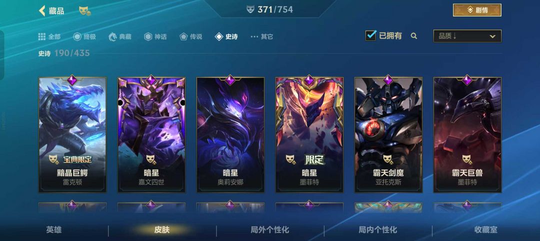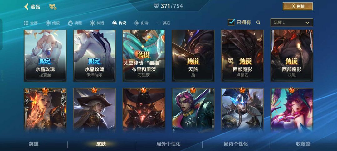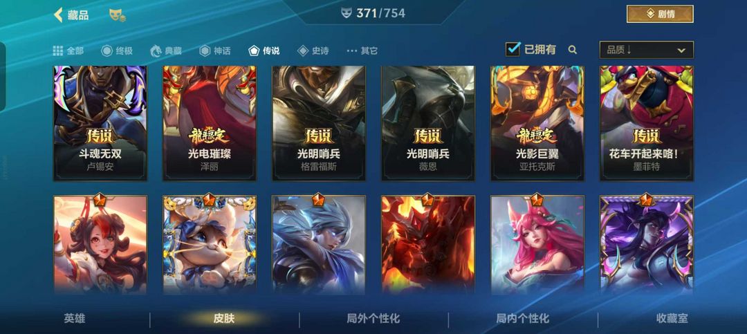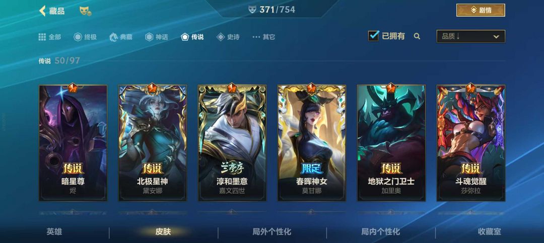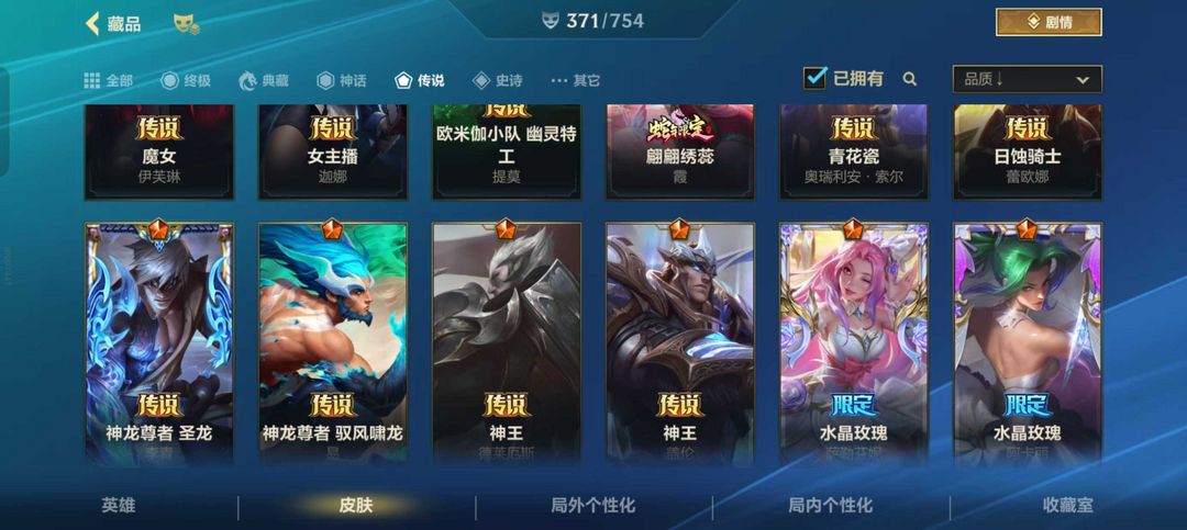 371皮肤✅天煞劫✅神龙李青✅源计划铁男✅青花瓷龙王✅旧水晶玫瑰全套✅