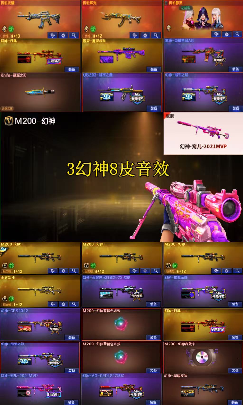 传说影煞辉光⭐③幻神宠儿8皮音效冠幻白鲨+星神+裁决音效卡⭐冠薇+白虎2皮音效+5年套USP雷暴冠特