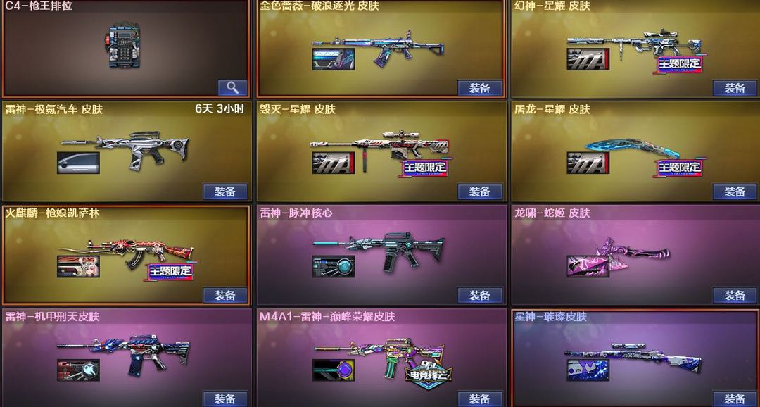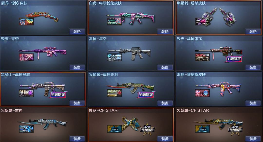 限制: 租号5次及以上 |装备描述:角色:岚兮儿,影豹,鹰,隼,王者潘多拉等 枪械:除了天荣银翼朱雀其他爆破枪基本都有 皮肤:冠幻,璀璨,流光秘银