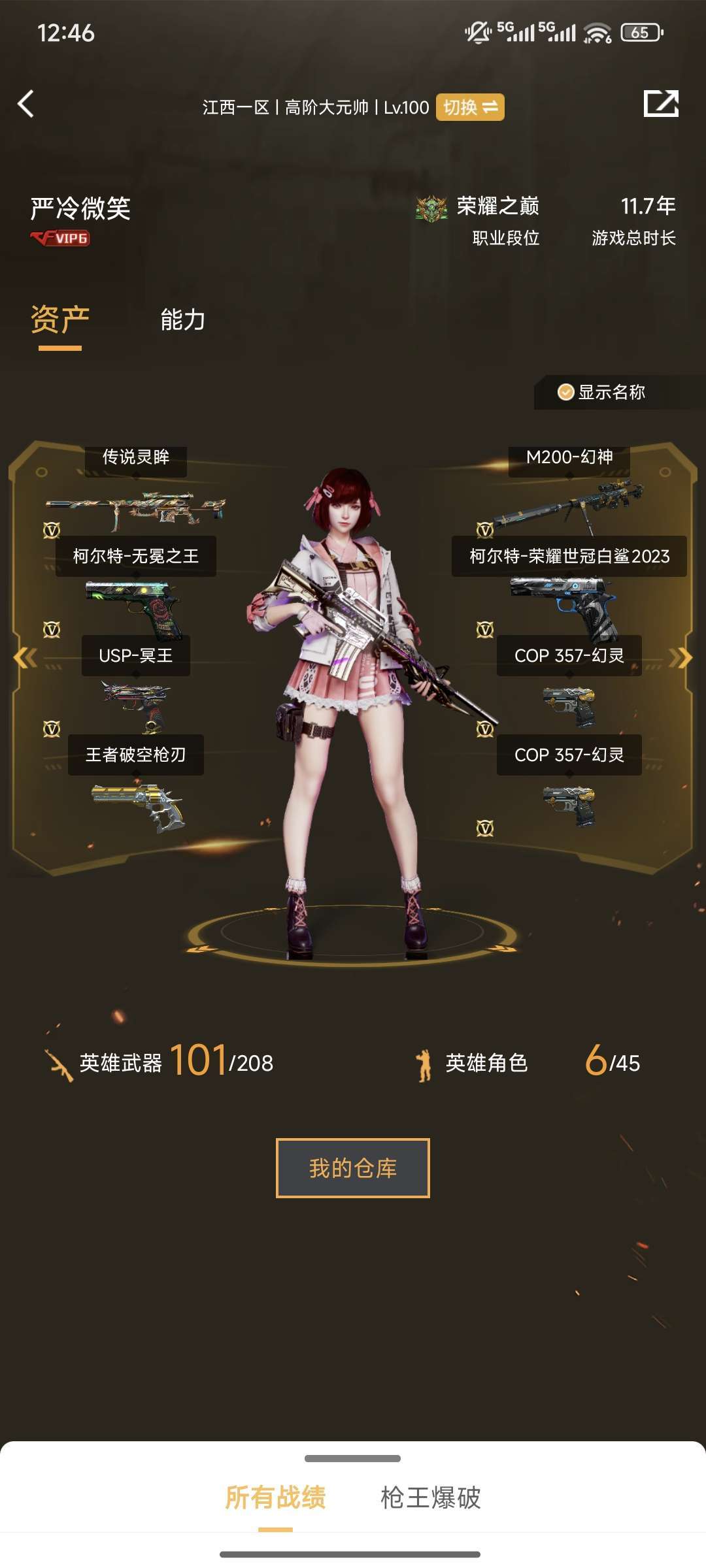 装备描述:传说灵眸,(雷神,白虎,qbz,星神,黑骑士,裁决)三件套,幻神带三皮有动感闪耀音效卡,六烈,无冕之王,白鲨世冠柯尔特,usp冥王,王者破空枪刃,cop357雷霆王者,cop幻灵