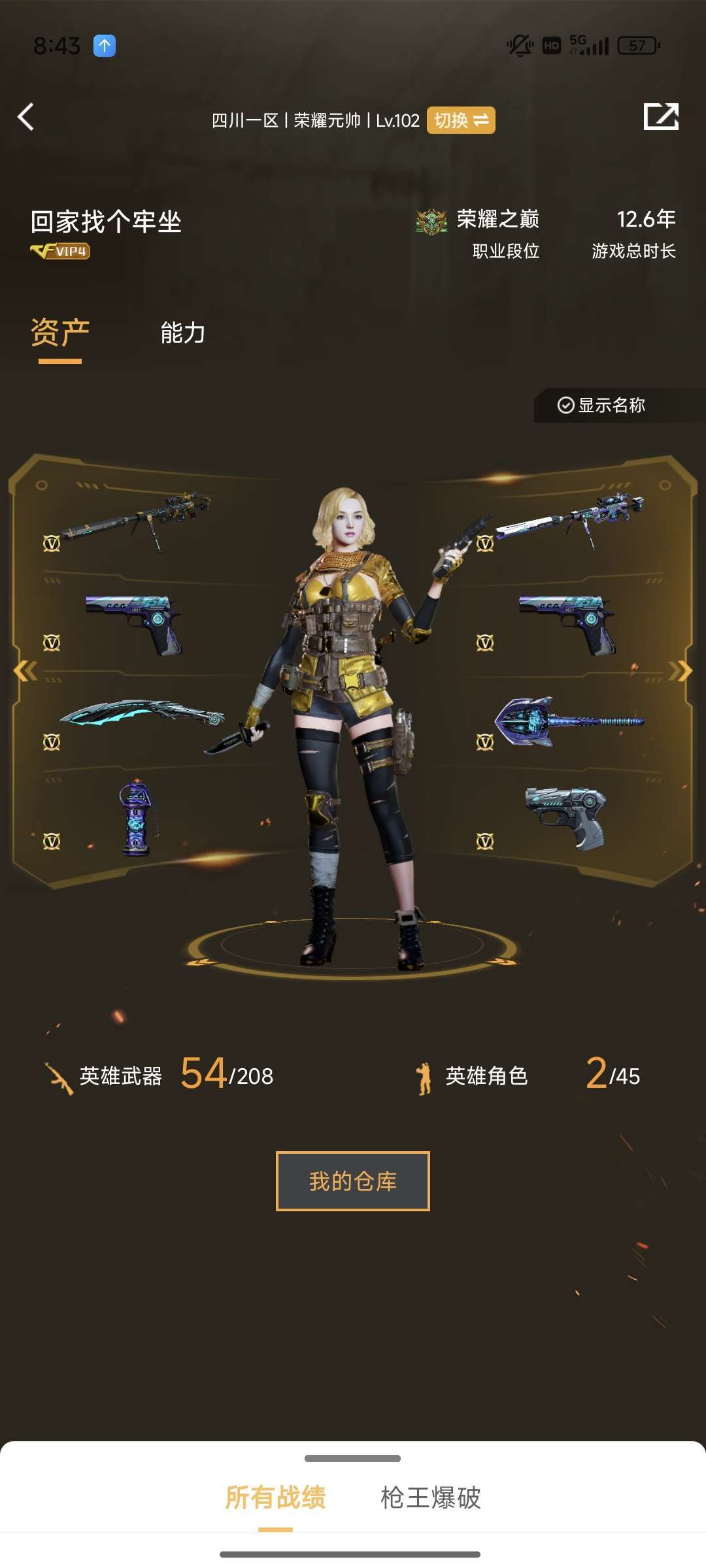 装备描述:精品爆破号-M200幻神(周瑜)带音效卡,巅峰荣耀裁决(带音效卡),巴雷特毁灭(星空、耀金带音效卡),M200竞技荣光全套,cop雷霆,柯尔特竞技荣光,王者蔷薇,王者春、电竞教官云悠悠、灵狐者职业经理(四防-副武器自动装填)
