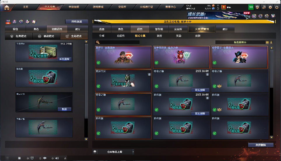 生化套 6烈+蝴蝶+清道夫+四防毒蝰术士+生化酒店复仇者女神皮肤