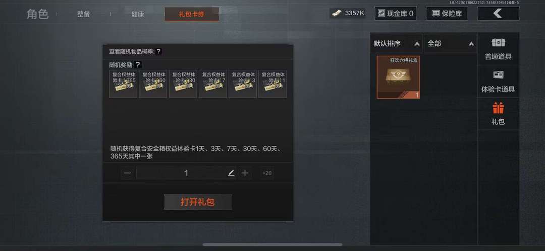 暗区突围苹果3.5m,纯币3357万,有六格可用
