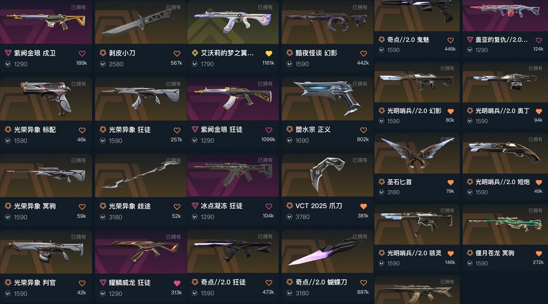 禁排✅光荣异象梦之翼猫猫ak.vct爪刀歧途剥皮小刀蝴蝶刀.冰点紫金归零者光明哨兵黯夜怪谈龙狙奇点