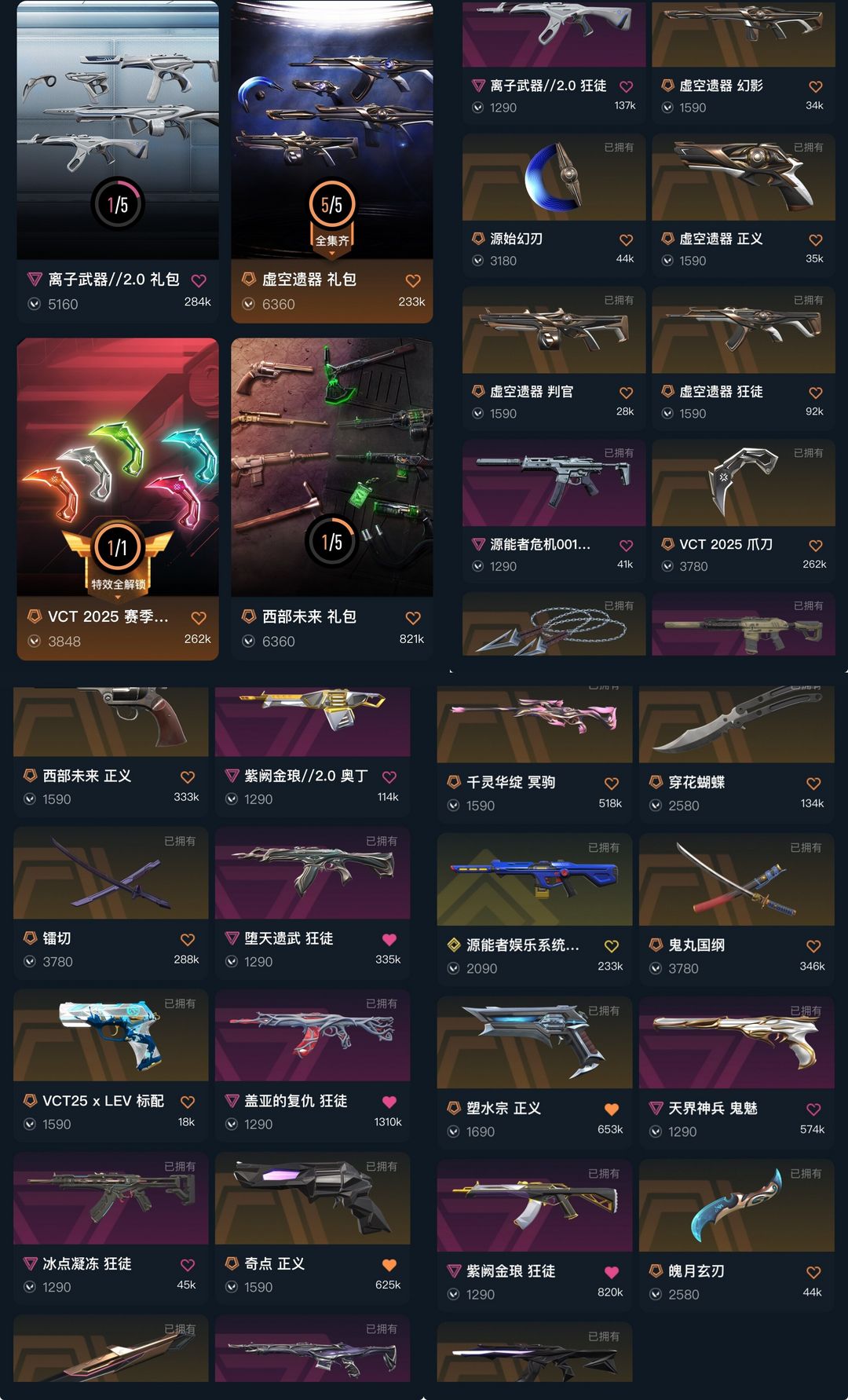 禁排丨掠夺爪刀影钩丨22冠军套丨掠影2.0套装丨镭切丨猴子摩托显卡狂徒丨鱼缸光明哨兵丨仪式匕首