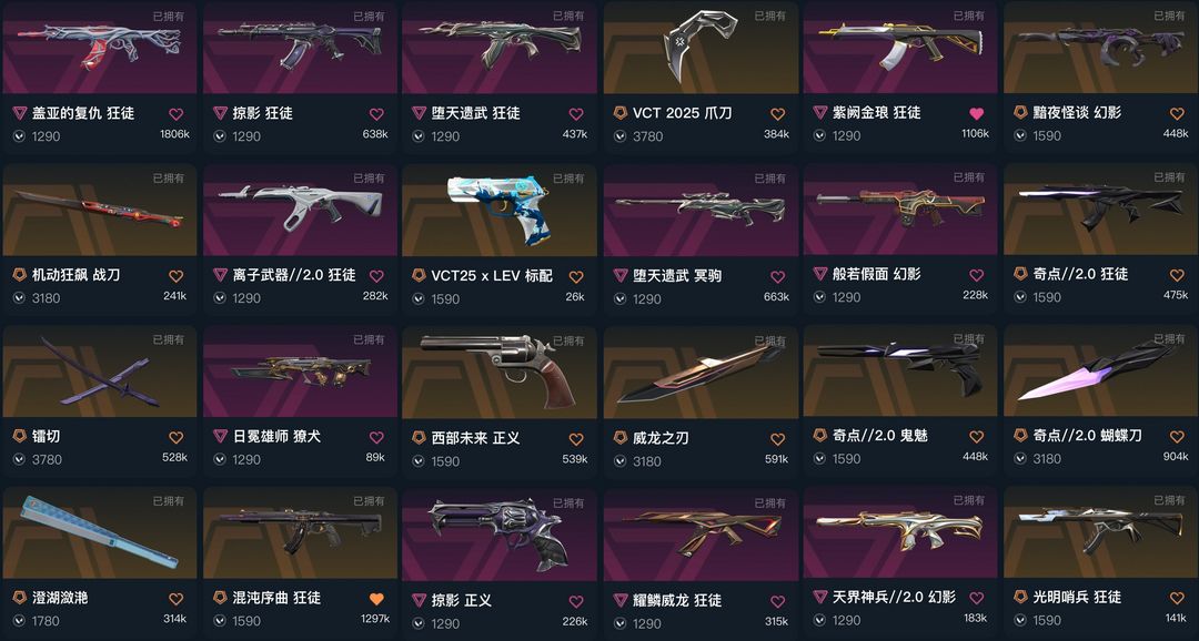 可排✅光荣异象⭐显卡1.0⭐离子2.0⭐VCT爪刀⭐上古龙炎⭐掠夺盖亚⭐归零者⭐剥皮小刀