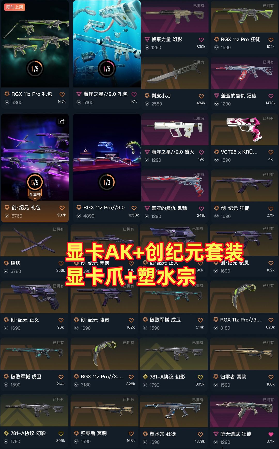 可排✨显卡1.0✨显卡爪刀✨镭切✨创纪元✨侦查幻影✨塑水宗弃王盖亚狂徒✨归零者冥狙破败戍卫✨剥皮小刀