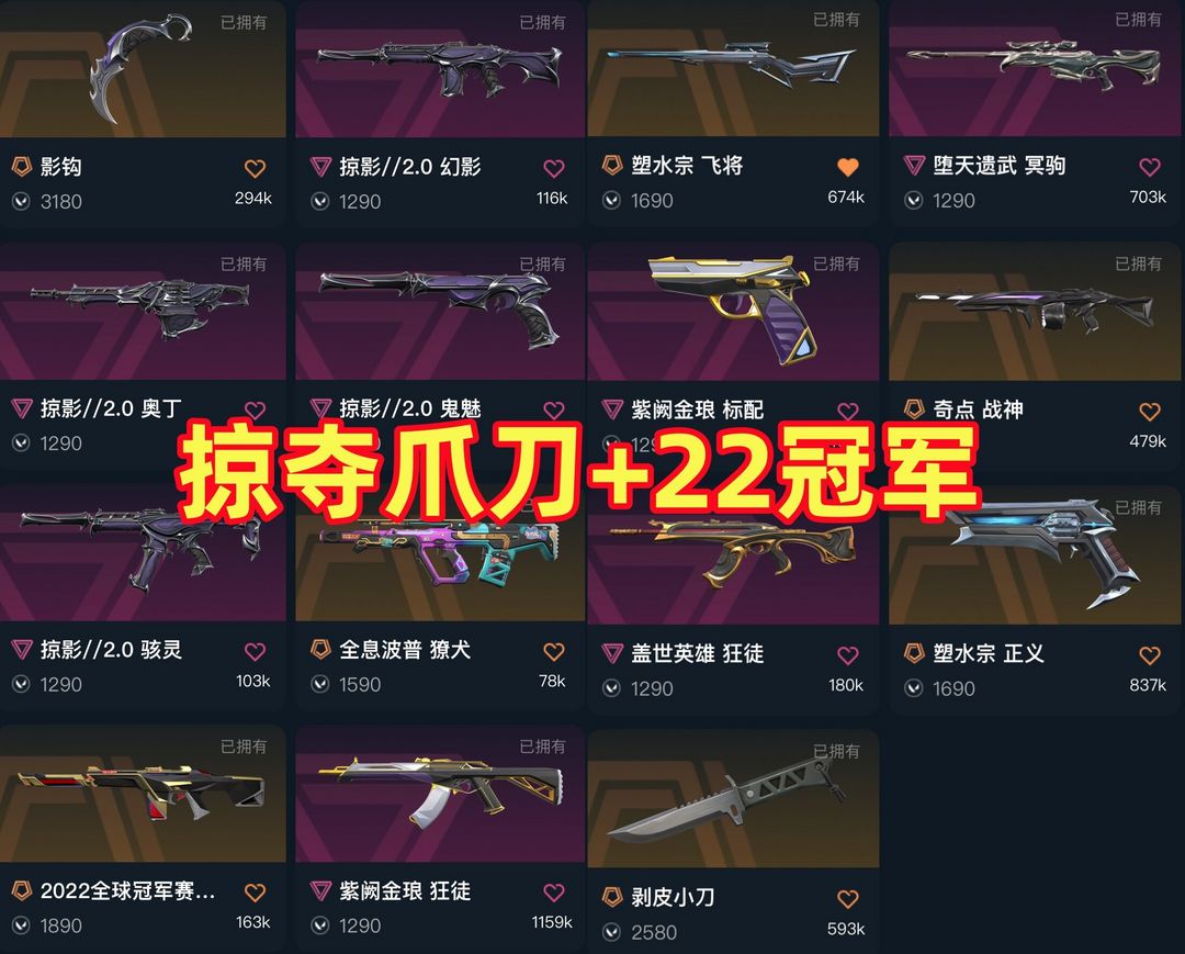 可排✅精品热门★影钩掠夺爪刀★22冠军剥皮小刀★掠影2.0套装★猴子紫金狂徒★塑水宗正义紫金标配奇点