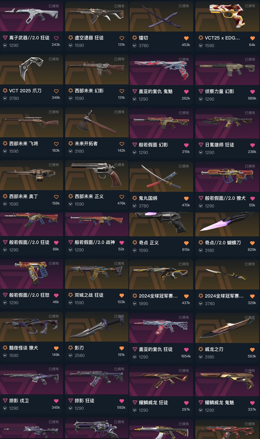禁排❤️离子2.0♥VCT爪刀♥虚空遗器♥西部未来♥24冠军套♥镭切♥双城之战奇点2.0掠夺盖亚紫金