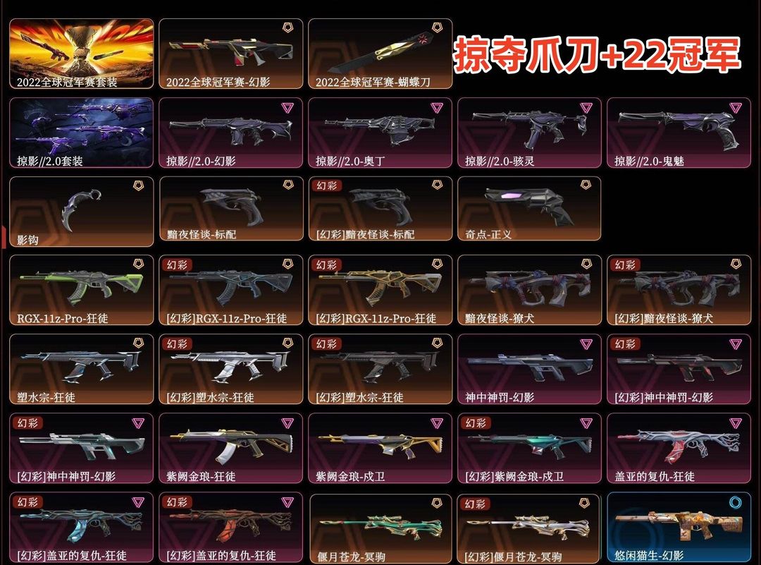 可排丨极品掠夺爪刀影钩丨22冠军套丨塑水宗紫金盖亚显卡狂徒丨黯夜怪谈标配丨龙狙丨奇点正义丨神中神罚