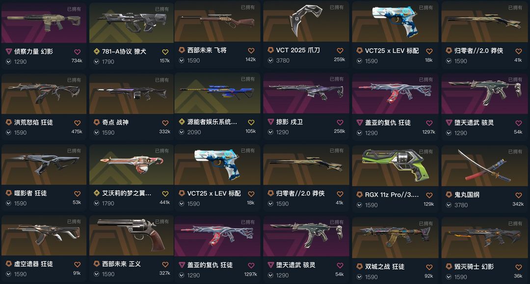 禁排✅VCT爪刀⚡西部未来⚡噬影者⚡虚空遗器⚡双城之战⚡般若太刀⚡盖亚掠夺⚡侦察幻影⚡奇点