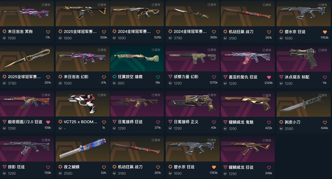 可排❤️25冠军套★24冠军套★掠夺塑水宗狮子盖亚威龙末日泡泡★剥皮小刀战刀★侦察力量★vct标配