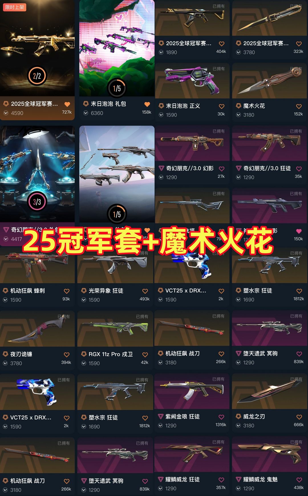 可排❤️25冠军套魔术火花威龙之刃❤️奇幻朋克光荣异象塑水宗威龙紫金神中神罚❤️末日泡泡弃王冥狙诡镰