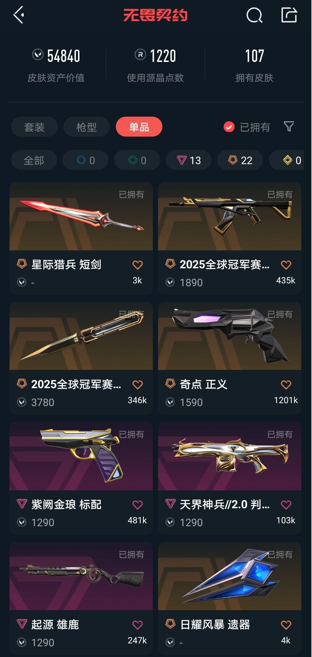 武器皮肤数量:107