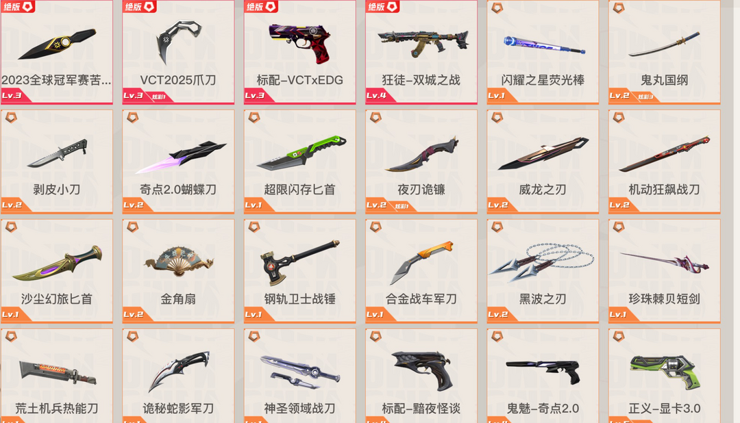 可排位✅顶级10W库存✅23冠军套⭐VCT爪刀⭐奇点2.0套⭐塑水宗套⭐黯夜怪谈全套⭐天界神兵套