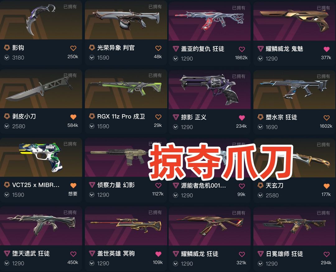 可排★精品库存★掠夺爪刀影钩天玄刀剥皮小刀★盖亚塑水宗弃王狮子威龙狂徒★侦查力量★猴子大狙vct标配