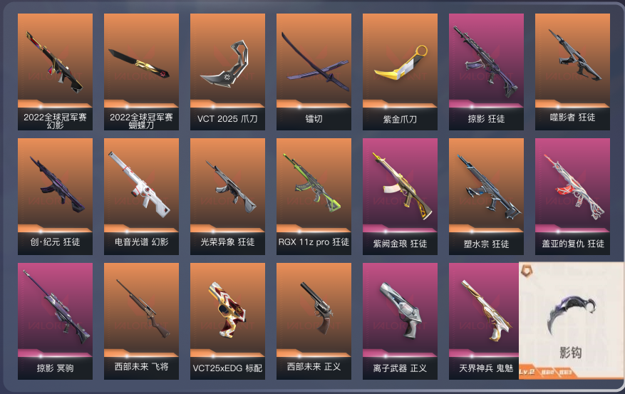 可排✅掠夺爪刀影钩/22冠军套/镭切vct爪刀紫金爪刀/塑水宗创纪元紫金盖亚光荣异象显卡西部未来天界