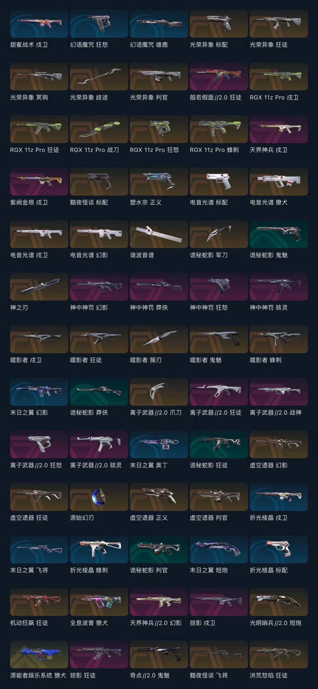 装备描述:随身武器:(盖亚的复仇 鬼魅 炫彩3);(盖亚的复仇 鬼魅 炫彩1);(盖亚的复仇 鬼魅 炫彩2);(归零者 短炮 炫彩2);(归零者 短炮 炫彩3);(归零者 短炮 炫彩1);(海洋之星 短炮 炫彩1);(堕天遗武 标配 炫彩1);(千灵华绽 正义 炫彩1);(千灵华绽 正义 炫彩2);(千灵华绽 正义 炫彩3);(RGX 11z Pro//3.0 正义 炫彩2);(RGX 11z Pro//3.0 正义 炫彩3);(RGX 11z Pro//3.0 正义 炫彩1);(黯夜怪谈 标配 炫彩1);(黯夜怪谈 标配 炫彩3);(黯夜怪谈 标配 炫彩2);(奇点//2.0 鬼魅 炫彩3);(奇点//2.0 鬼魅 炫彩2);(奇点//2.0 鬼魅 炫彩1);(创·纪元 正义 炫彩1);(创·纪元 正义 炫彩2);(创·纪元 正义 炫彩3);(RGX 11z Pro//2.0 标配 炫彩2);(RGX 11z Pro//2.0 标配 炫彩3);(RGX 11z
