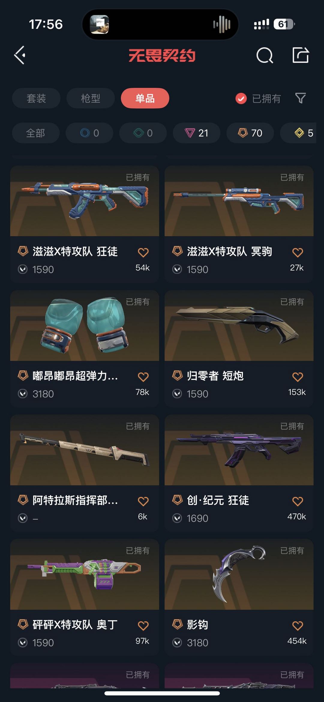武器皮肤数量:206