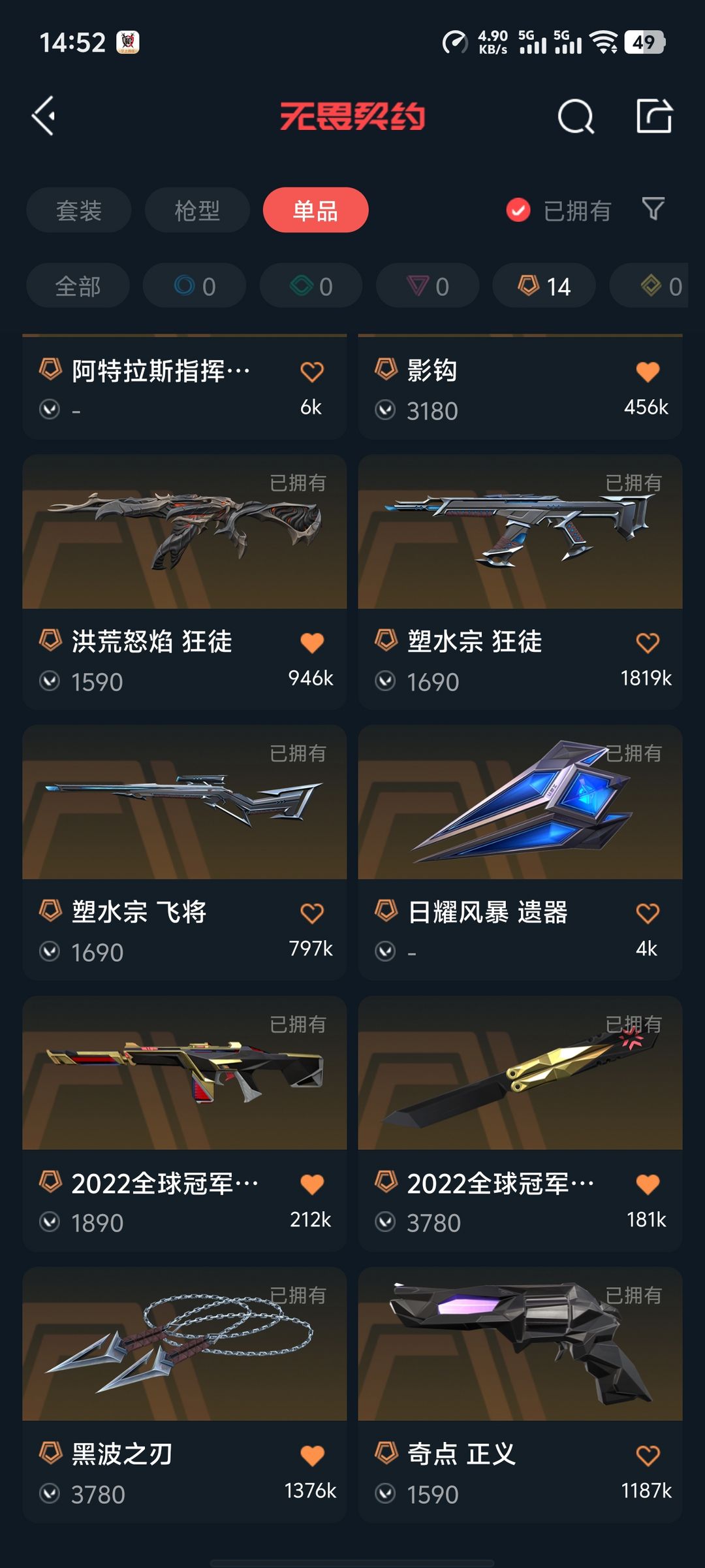 传奇数量:14