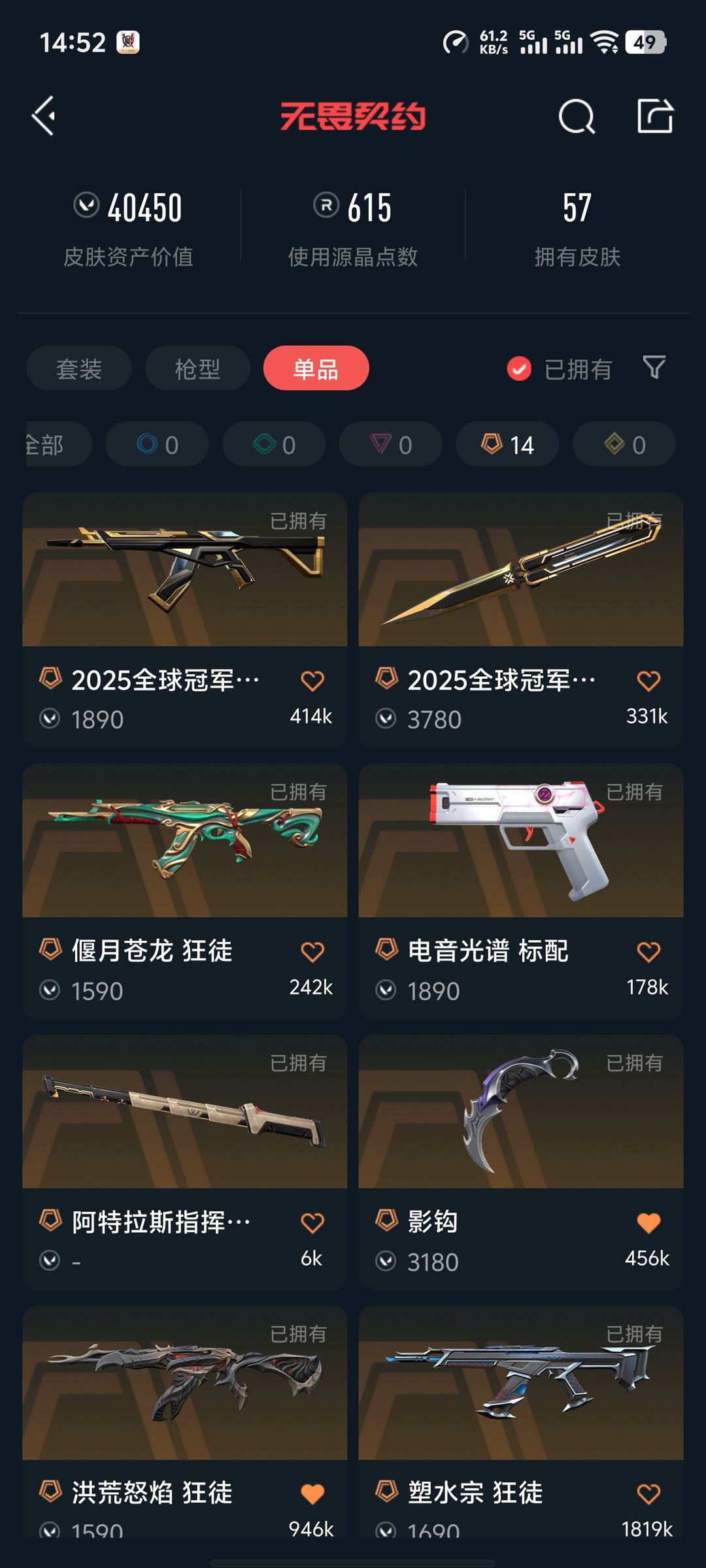 武器皮肤数量:57
