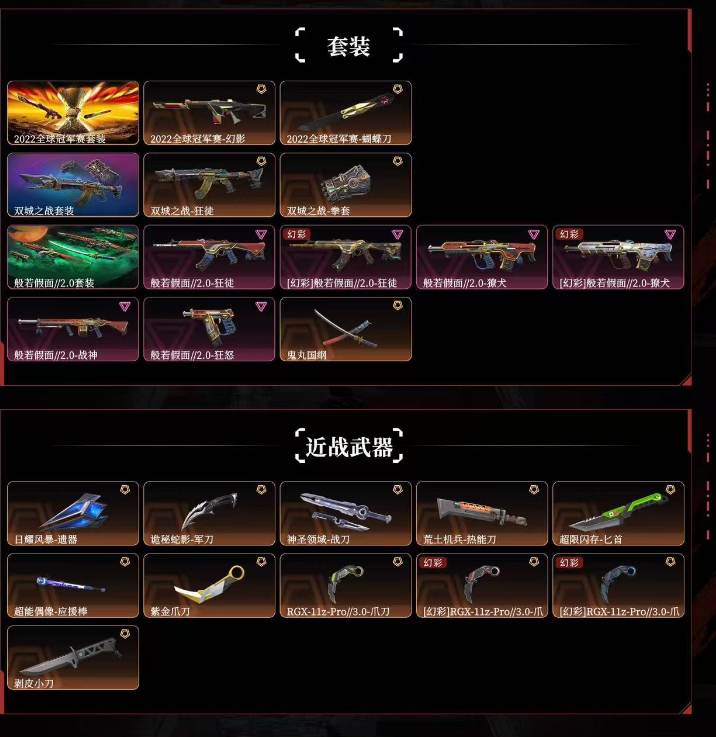 22冠军套♥爆爆班若套♥显卡刀紫金爪剥皮刀♥显卡狂徒♥虚空光明塑水狂徒♥猫猫离子归零盖亚狂徒♥侦查