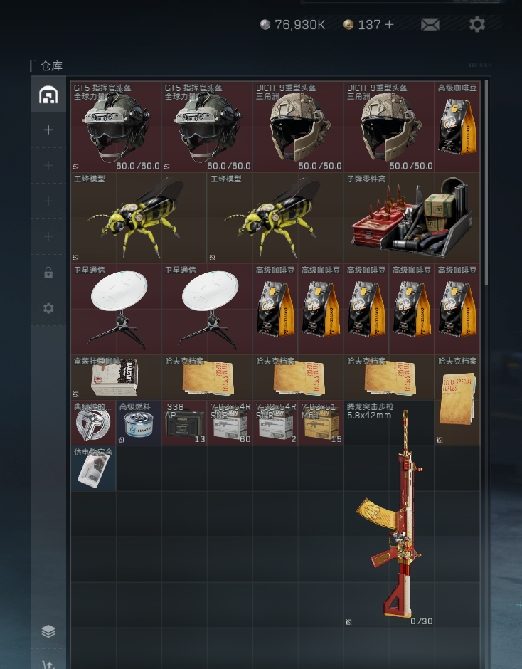 装备描述:77000k女医红皮13发AW 3X3保险还有一组仙蛋 制式特种随便用 还有材料可以搓6套和子弹 祝老板猛攻成功!