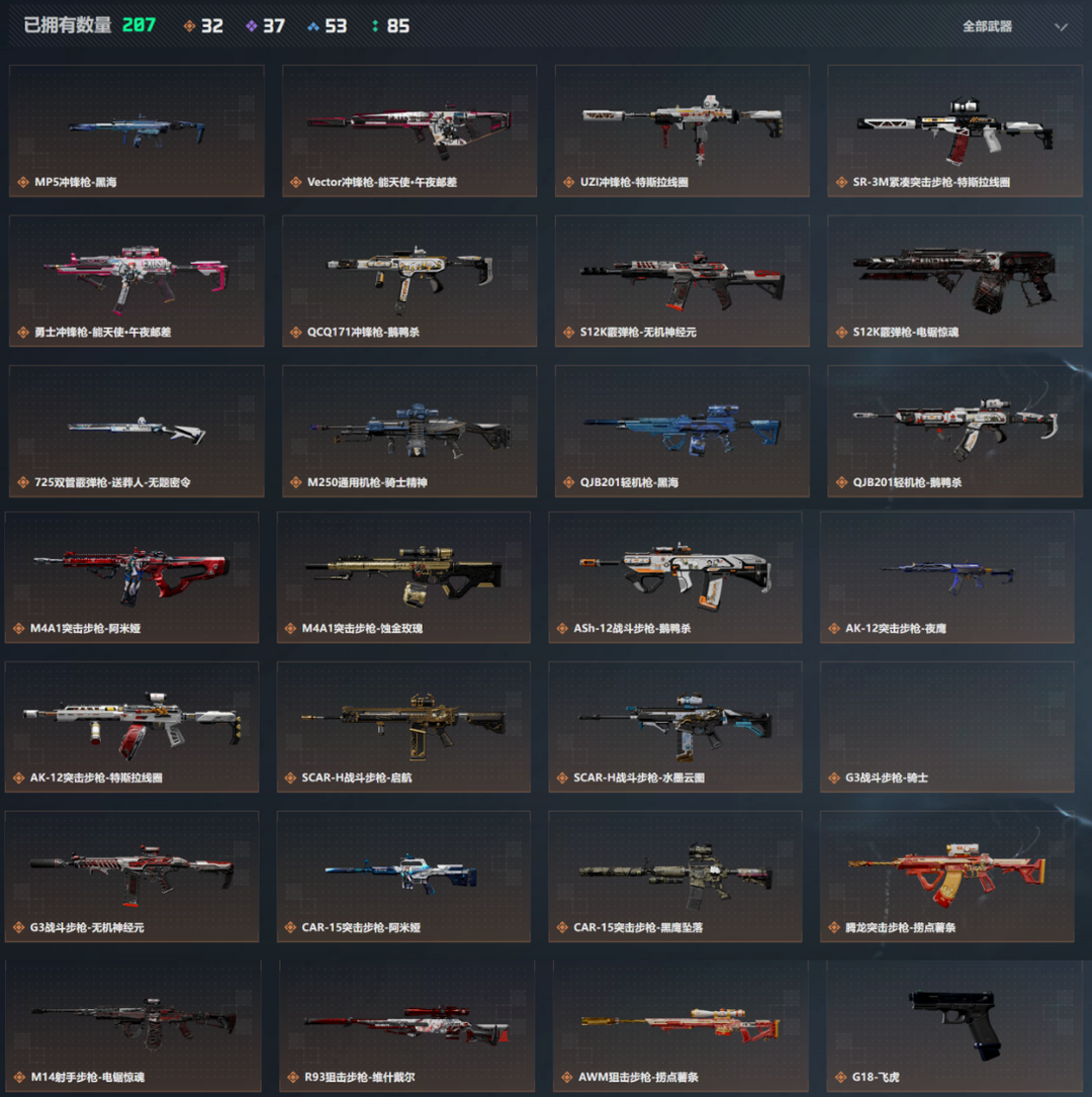皮肤号 4红皮满体力✨M7棱镜S2✨黑海/电锯惊魂刀皮✨飞虎吴彦祖✨蚀金玫瑰✨午夜邮差✨维什戴尔✨水墨云图
