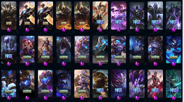 艾欧尼亚8000P〓131神话全至臻KDA白虎剑圣龙琴青年奥斯曼〓EDG灰烬骑士水晶周年庆年限泳池套