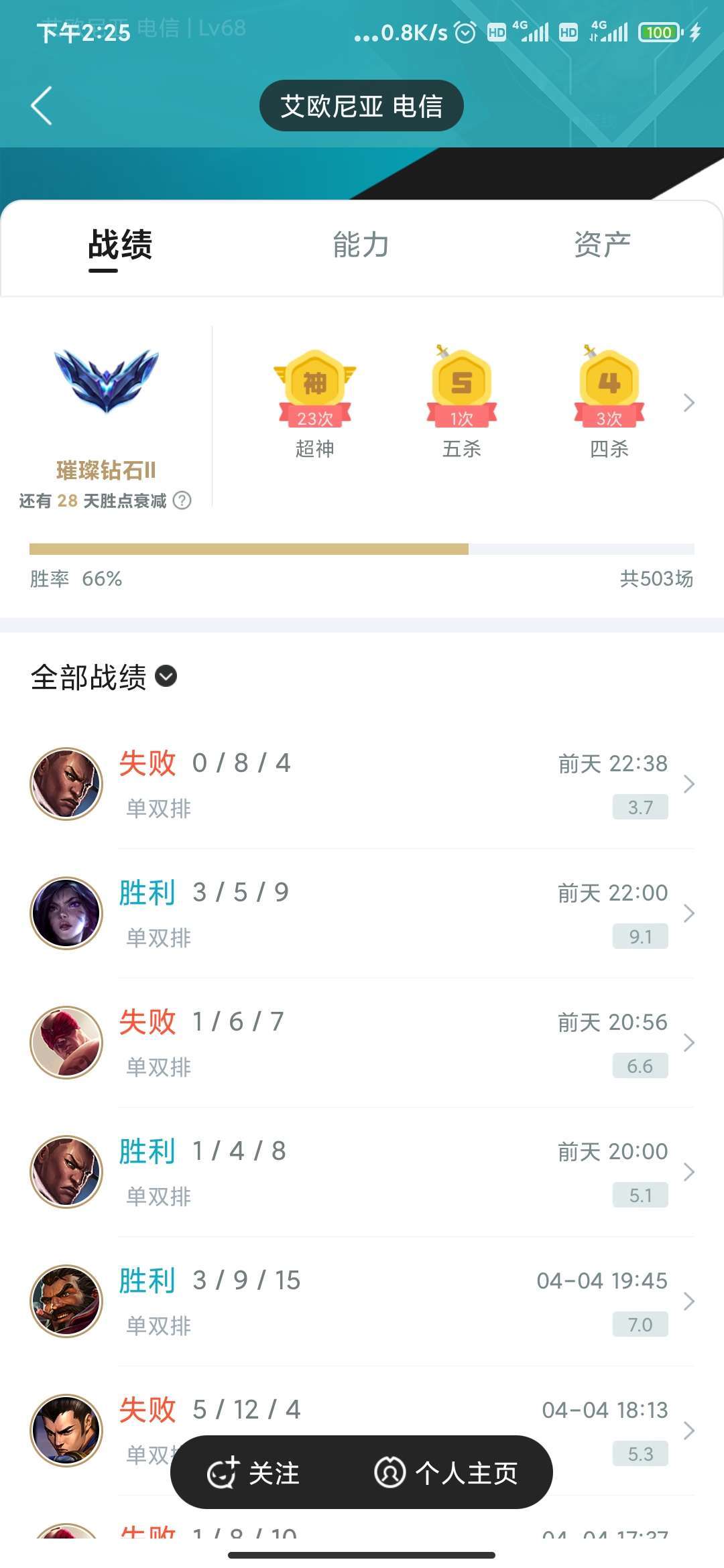 [卡艾欧尼亚]钻二 少英雄 少皮 钻石体验号 可排位 变强 虐菜 带妹 首选账号 菜就多练 ୧⍢⃝୨