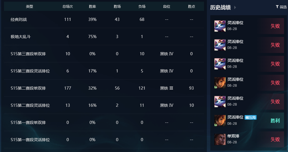 比尔吉沃特❤️可排位❤️单双青铜❤️灵活青铜❤️匹配负胜率❤️极品虐菜号