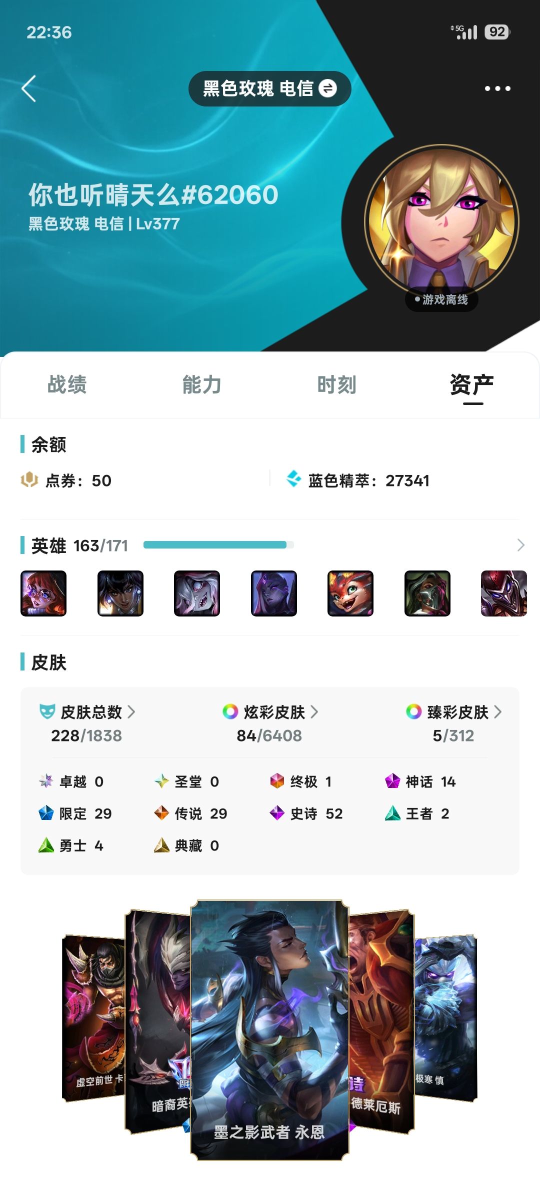 装备描述:200皮肤140英雄多赛季不打低段位炸鱼专用