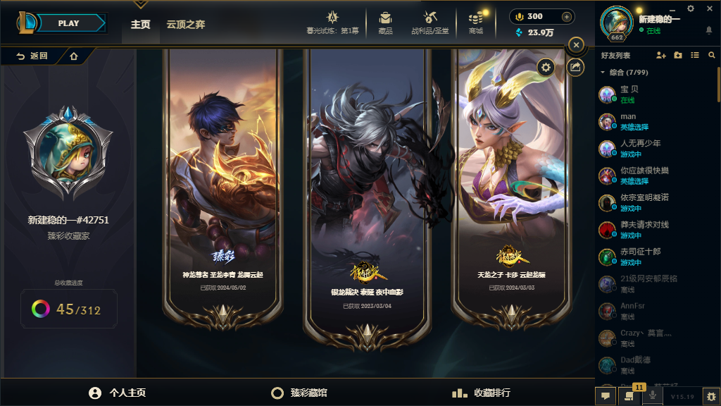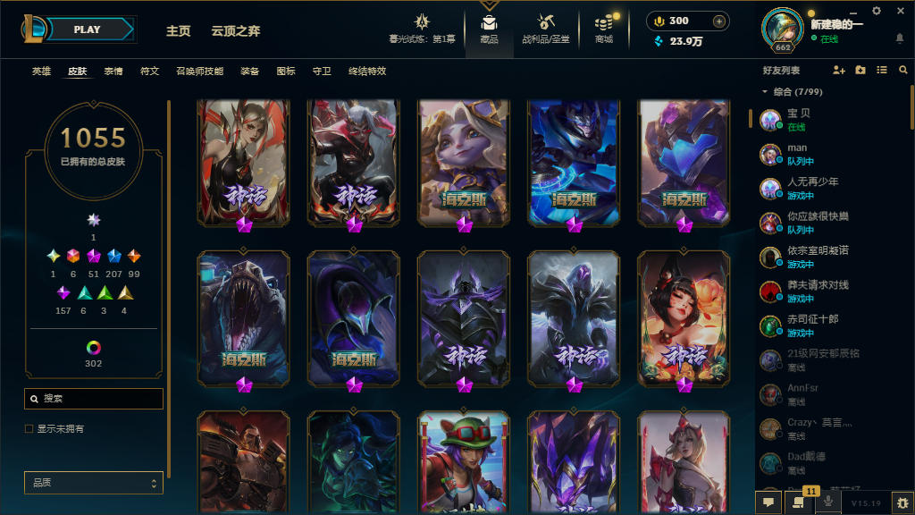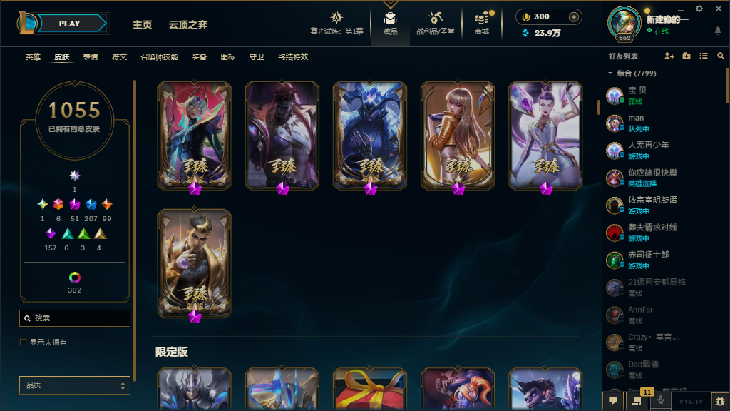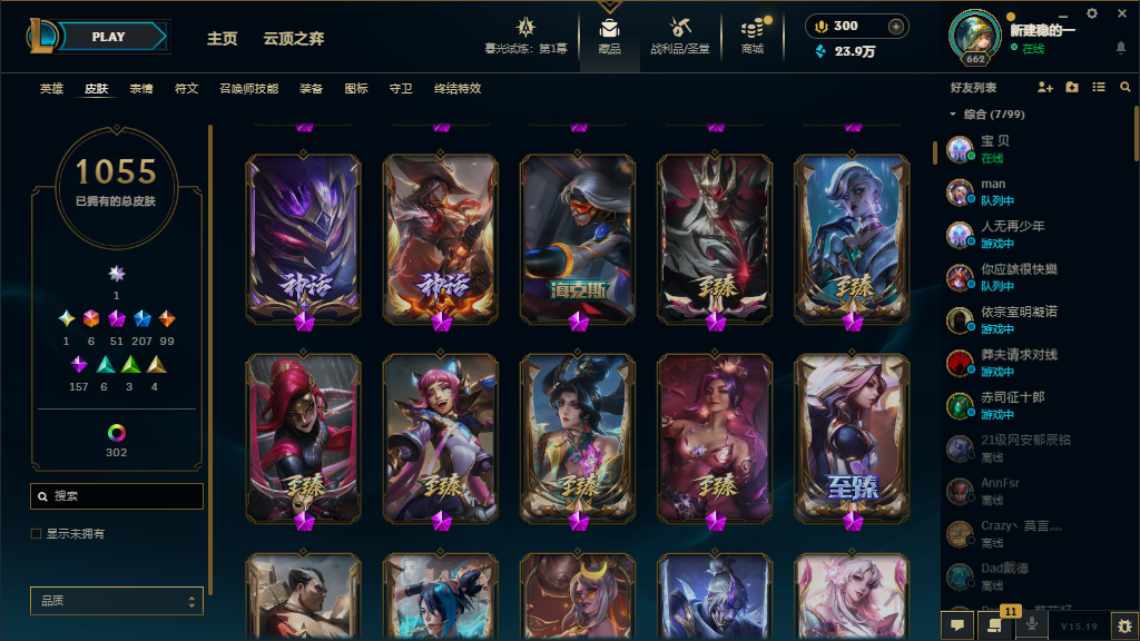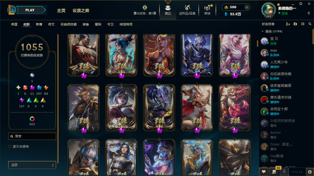 可排位⚡铂金段位⚡皮肤1500⚡神话51⚡名人堂卡莎⚡双城之战2金克丝⚡炫彩神龙⚡天龙卡莎⚡