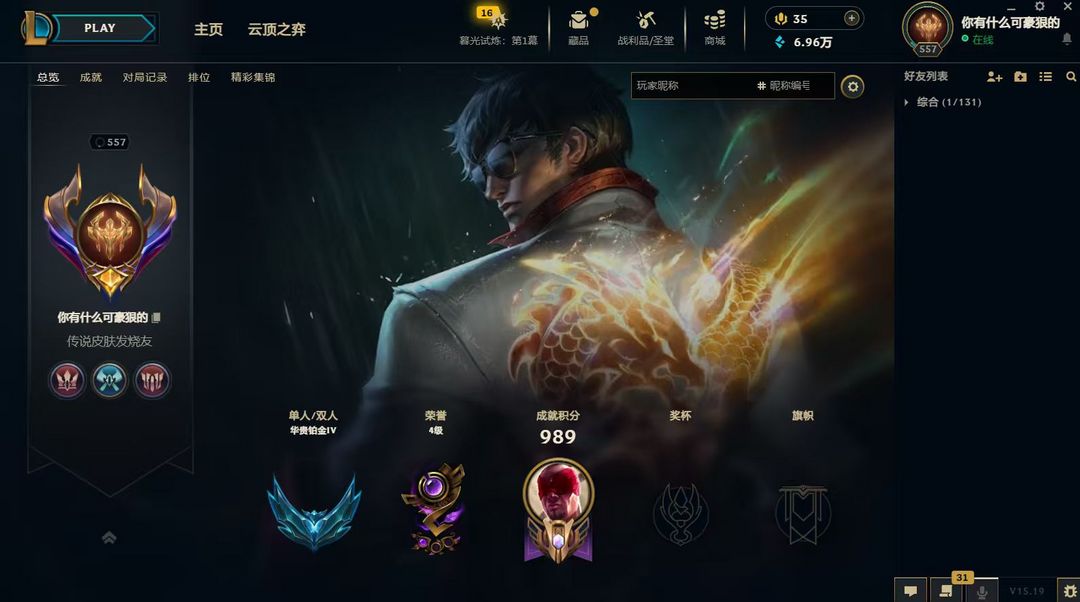 段位:557级 华贵铂金IV