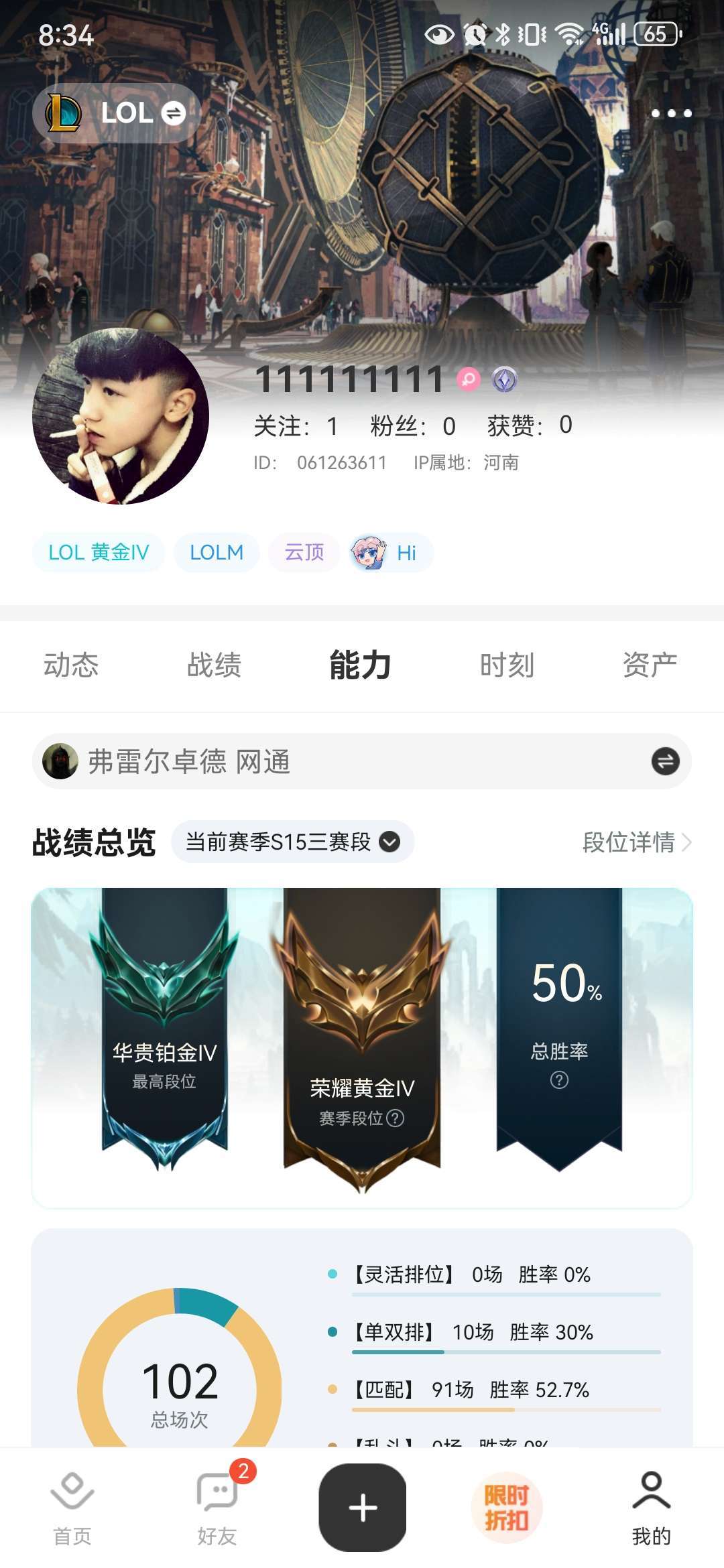 段位:182级 荣耀黄金IV