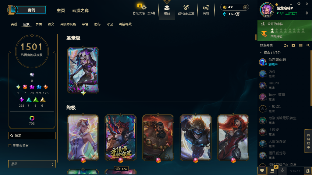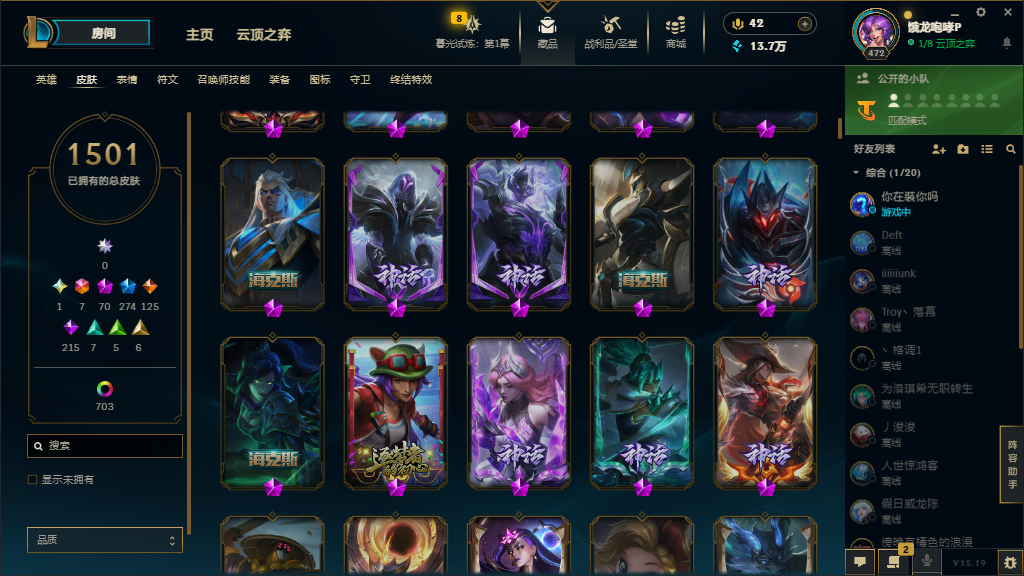 全区第一⚡2200皮肤⚡70神⚡臻彩104⚡妹子号⚡云顶神话3小小英雄棋盘⚡神话幻想阿狸⚡圣堂金克丝