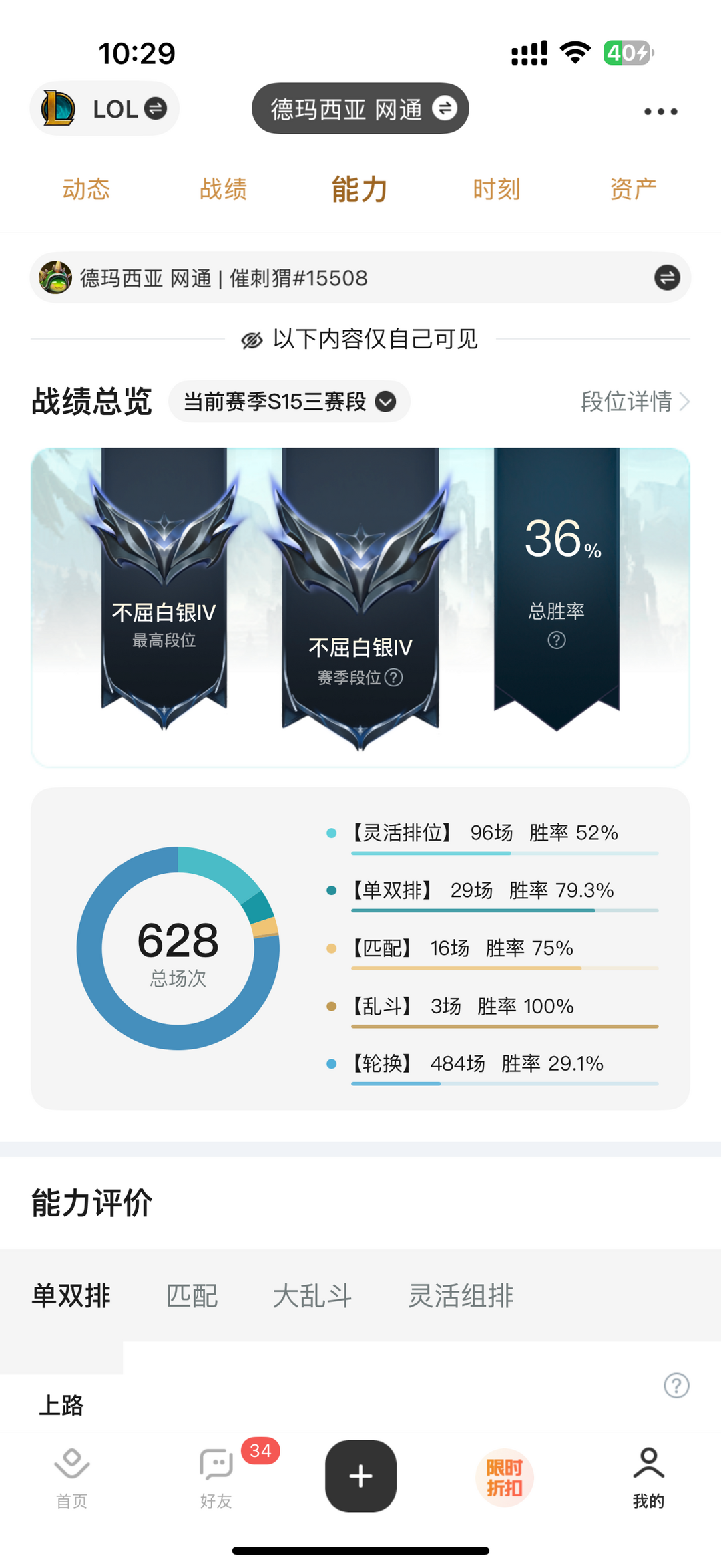 联盟五区·德玛西亚·单双白银4·灵活青铜1·匹配乱斗低隐藏分(陪玩娱乐精品号)