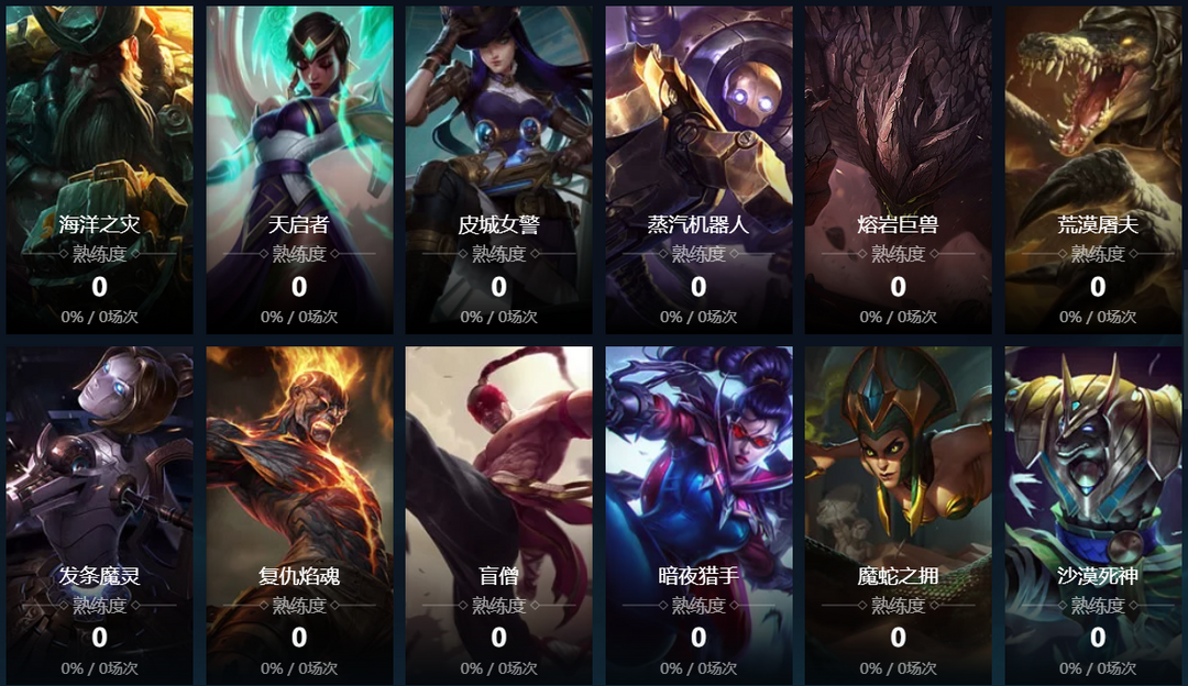 疾风剑豪;戏命师;祖安花火;暴走萝莉;圣枪游侠;影流之主;时间刺客;皮城执法官;唤潮鲛姬;魔法猫咪;