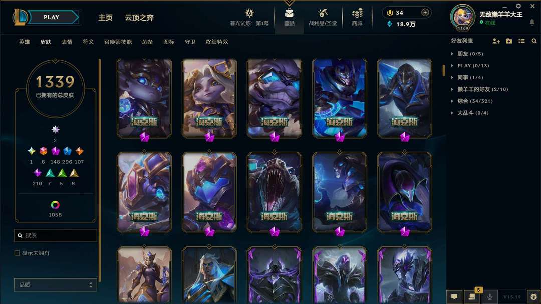 【班德尔城】1339皮★名人堂卡莎★圣堂金克丝★龙瞎★全至臻★全海克斯