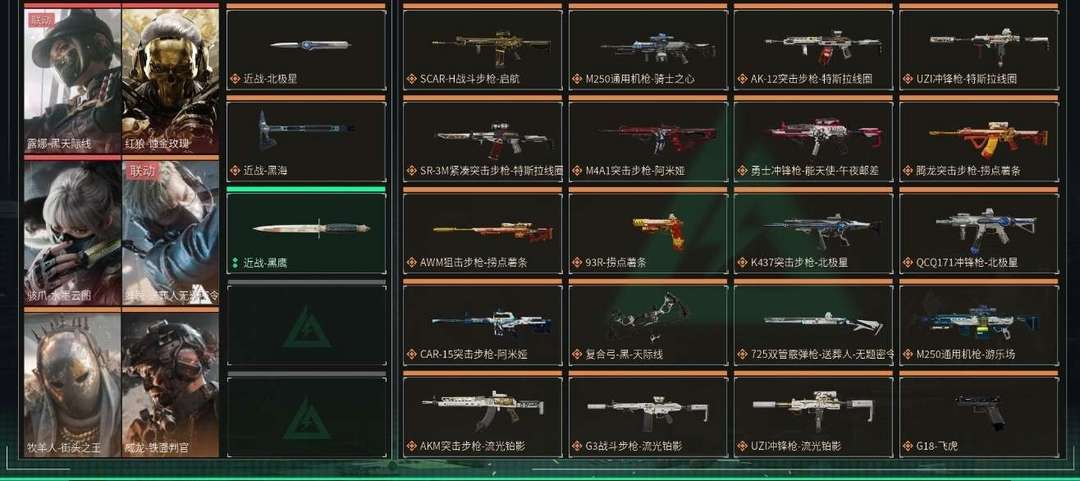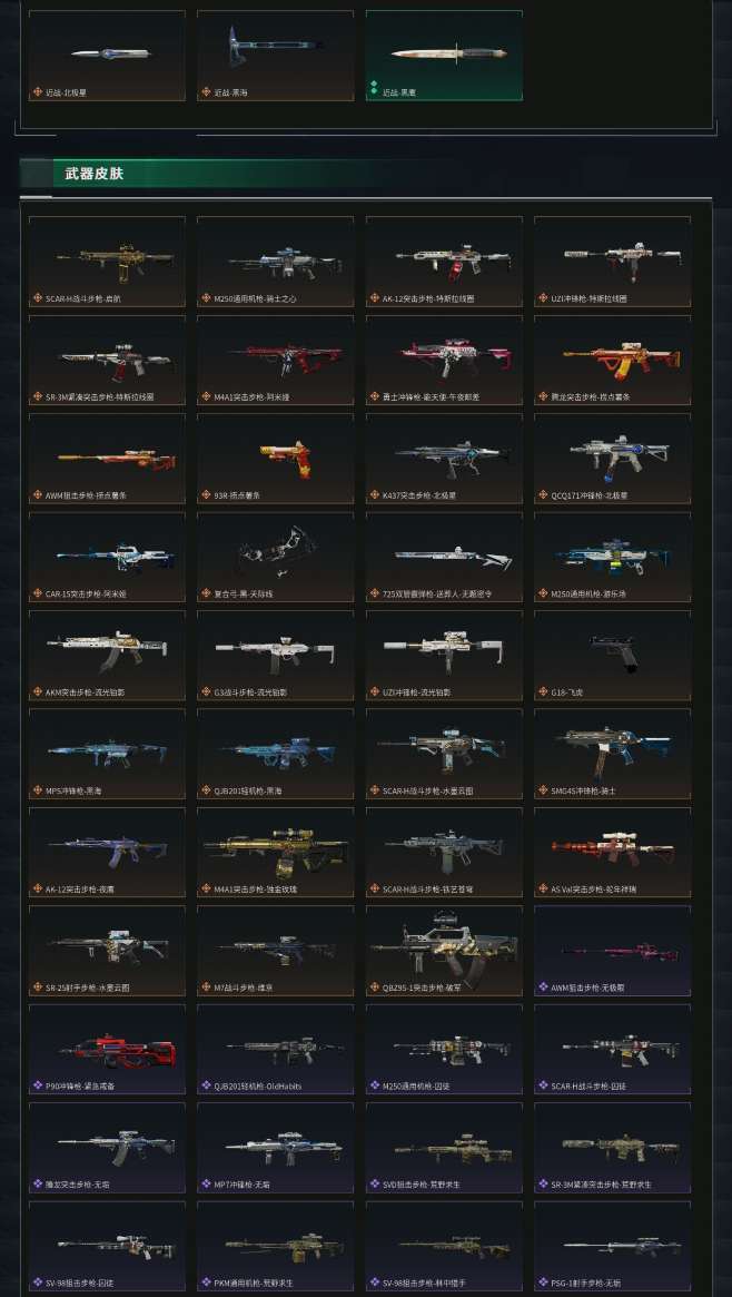 皮肤号 三红皮双刀皮35金 天际线 蚀金玫瑰 水墨云图吴彦祖北极星全套 黑海全套 满体满负重
