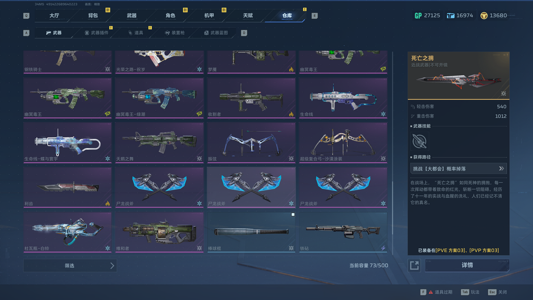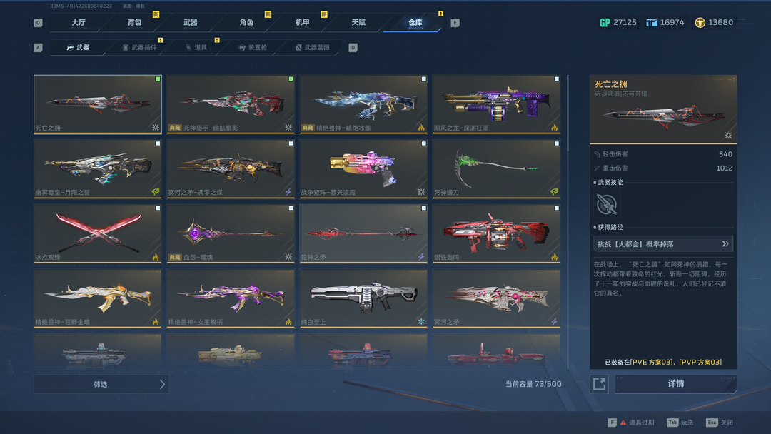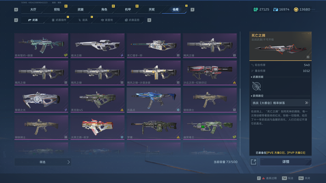 装备描述:女王,金战云,幽航猎影,精绝冰骸,深渊狂潮,月陨之势,凋零之煤。