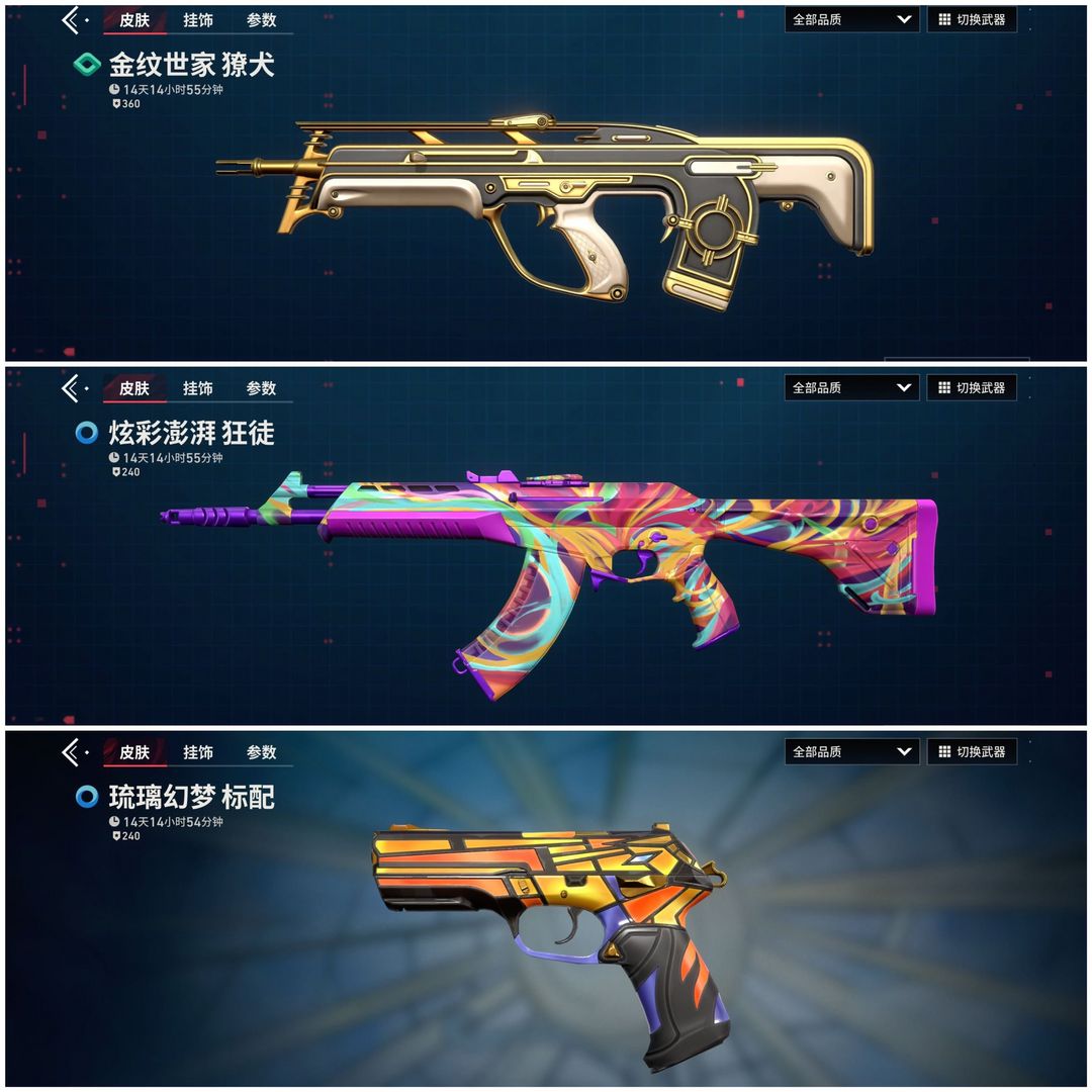 VCT爪刀✅高危看描述解除✅离子大狙✅离子正义✅离子幻影✅到时不顶号✅金纹獠犬✅炫彩狂徒✅琉璃标配