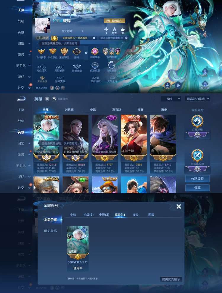 游戏区服:王者荣耀-QQ安卓-QQ账号