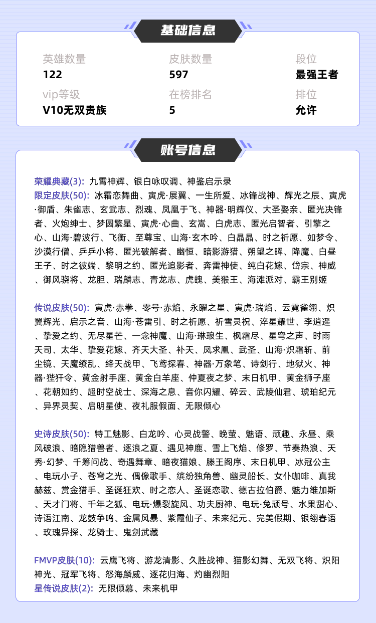 限制: 租号1次及以上 |装备描述:10月在榜5小国标马超在榜狂铁在榜司空震在榜夏洛特在榜曹操/巅峰千强闪电框/有魔方/历史多国服/小魔方亮/巅峰击败特效 租号老板须知 有人在线请不要挤号!谢谢 申请号主协助 我会处理 挤号信誉分大残打不了排位! 设置押金只为能认真对待每一局游戏 谢谢理解 无违规24h内退押 本公司(武汉有梦网络技术公司)所有账号已在武汉市公安局申报虚拟财产保护 所有开挂开美化包等 第三方违规软件 导致账号封禁的 将会联合警方平台经理追查 本店铺账号均为数万元起步切勿抱有侥幸心理 据《刑法》第二百七五条故意毁坏财产物罪:故意毁坏公私财物,数额较大处罚7年以下有期徒刑 已有1例 一经发现追查到底 望各位自重不要挑战法律 ●以下违规情况处罚租金+保证金 ①禁止使用账号改名卡、皮肤碎片、英雄碎片、(小喇叭) ②挂机、辱骂导致掉信誉积分 ③非法发言导致账号禁言 ④聊天记录出现诈骗记录 ⑤禁止巅峰赛 ,打巅峰拉黑 文明租号,谢谢! 租过此号老板事业蒸蒸日上、财源广进! 管理员将24小时对账号进行后台监控!