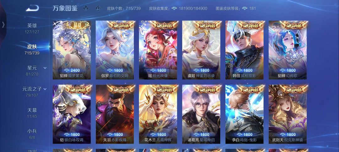 715皮 凯无双神罚♥神公孙离干将狐妖小红娘♥诡秘之主系列全皮♥满典藏满小兵♥满无双满珍品♥馥梦繁花