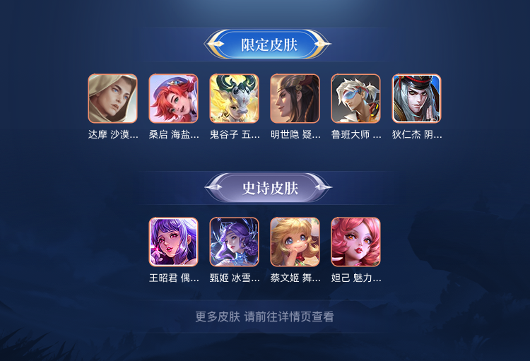 史诗皮肤较多,蔡文姬史诗皮肤,王昭君史诗皮肤,有很多史诗皮肤