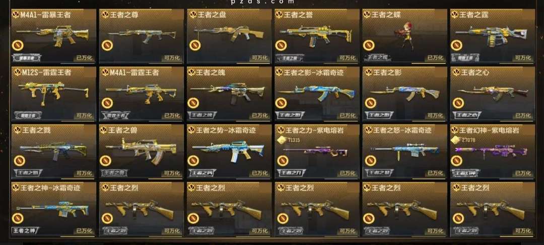 装备描述:王霆,王影,奉先无双,王幻(冰皮,火皮,紫电皮,ep皮),9套王者雷,星象,王爆,王势,王魄,王怒
