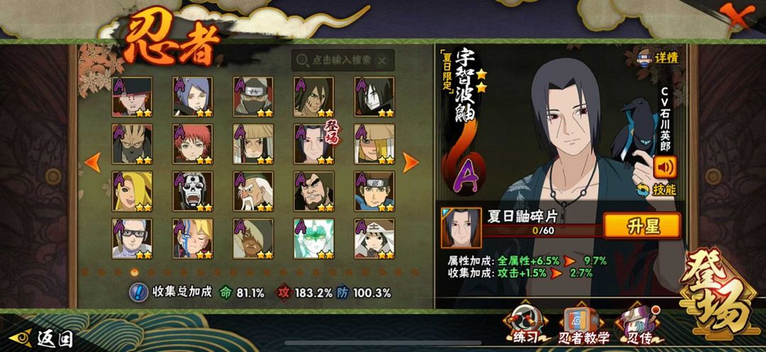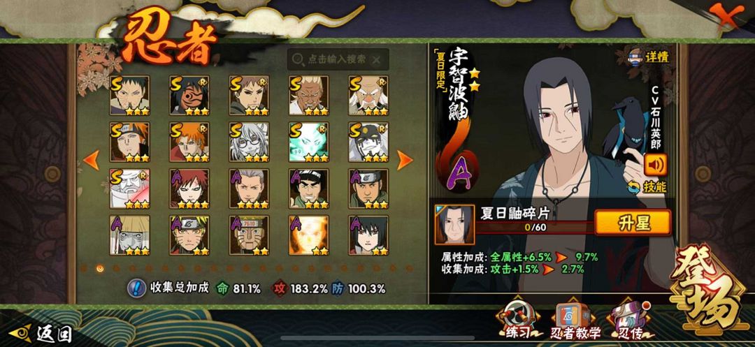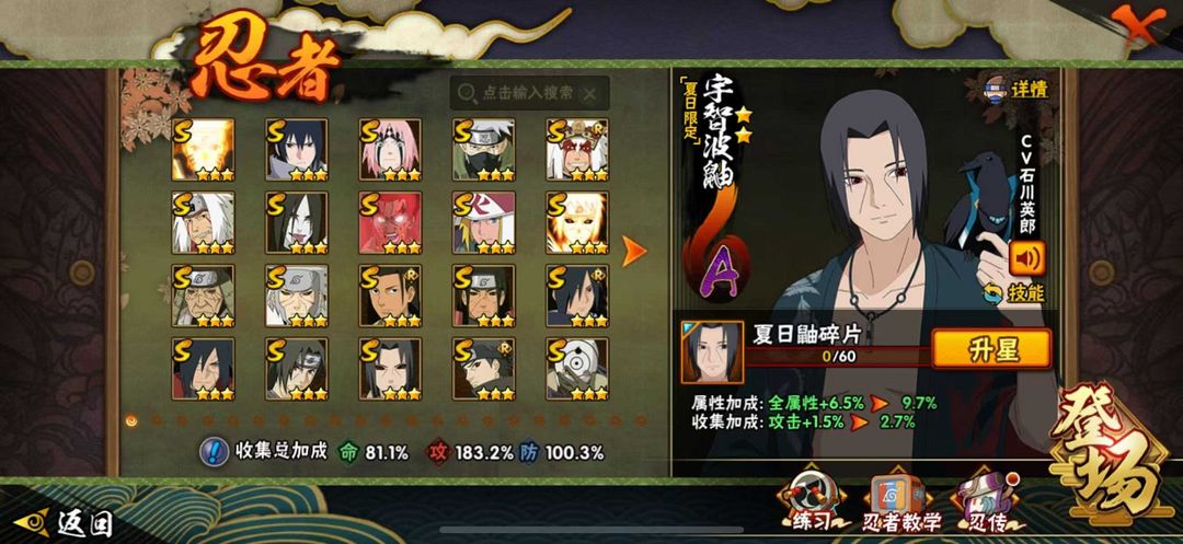 32S,49A,鸣佐+仙人巳月+须佐止水+漂泊佩恩+死二+泳装鼬+忍战大野+白面具+九尾水门