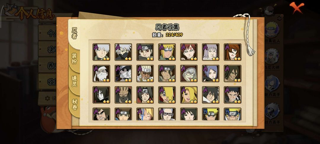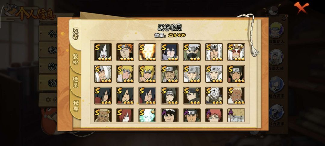 装备描述:漂泊带土 漂泊再不斩 机械鸣人 舍人 暴怒带土 死水 绿牛 紫狗 黄猿 秽土柱间 死二 活二 白面具 忍战艾