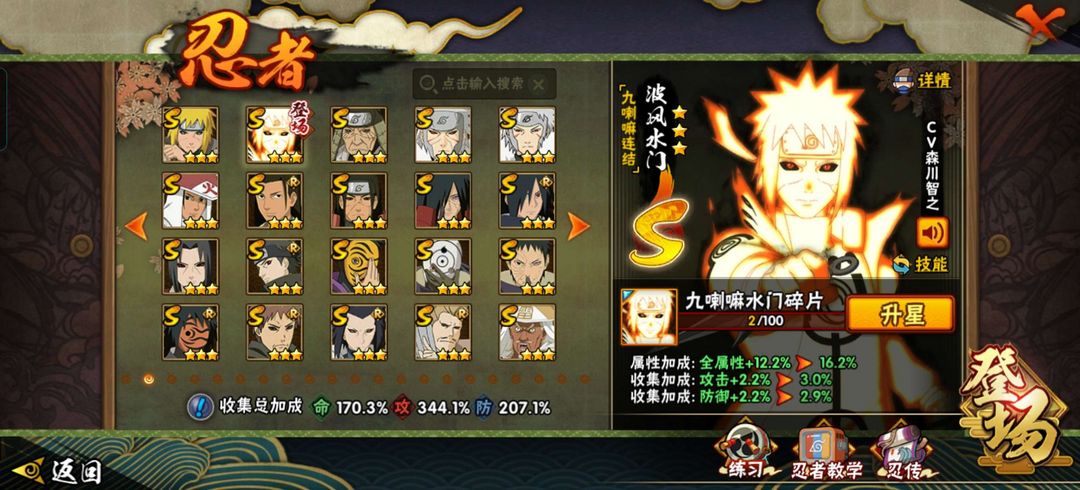 V区全s忍✨九喇嘛水门✨6尾鸣人✨夏日黑土香燐已出✨✨大筒木舍人✨黑绝✨3170万战力